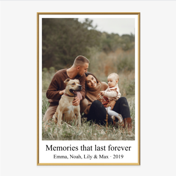 Poster im Rahmen aus Foto mit weißem Rand und Schriftzug